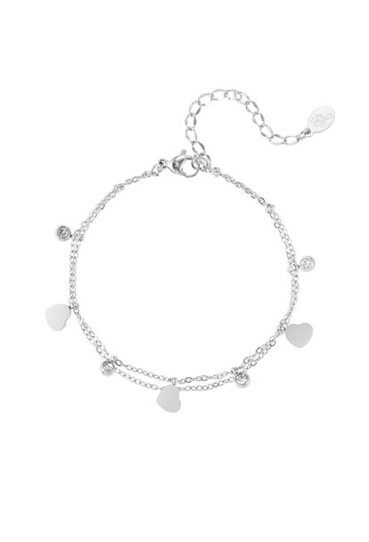 Bedel armband met harten en diamanten - zilver kleur